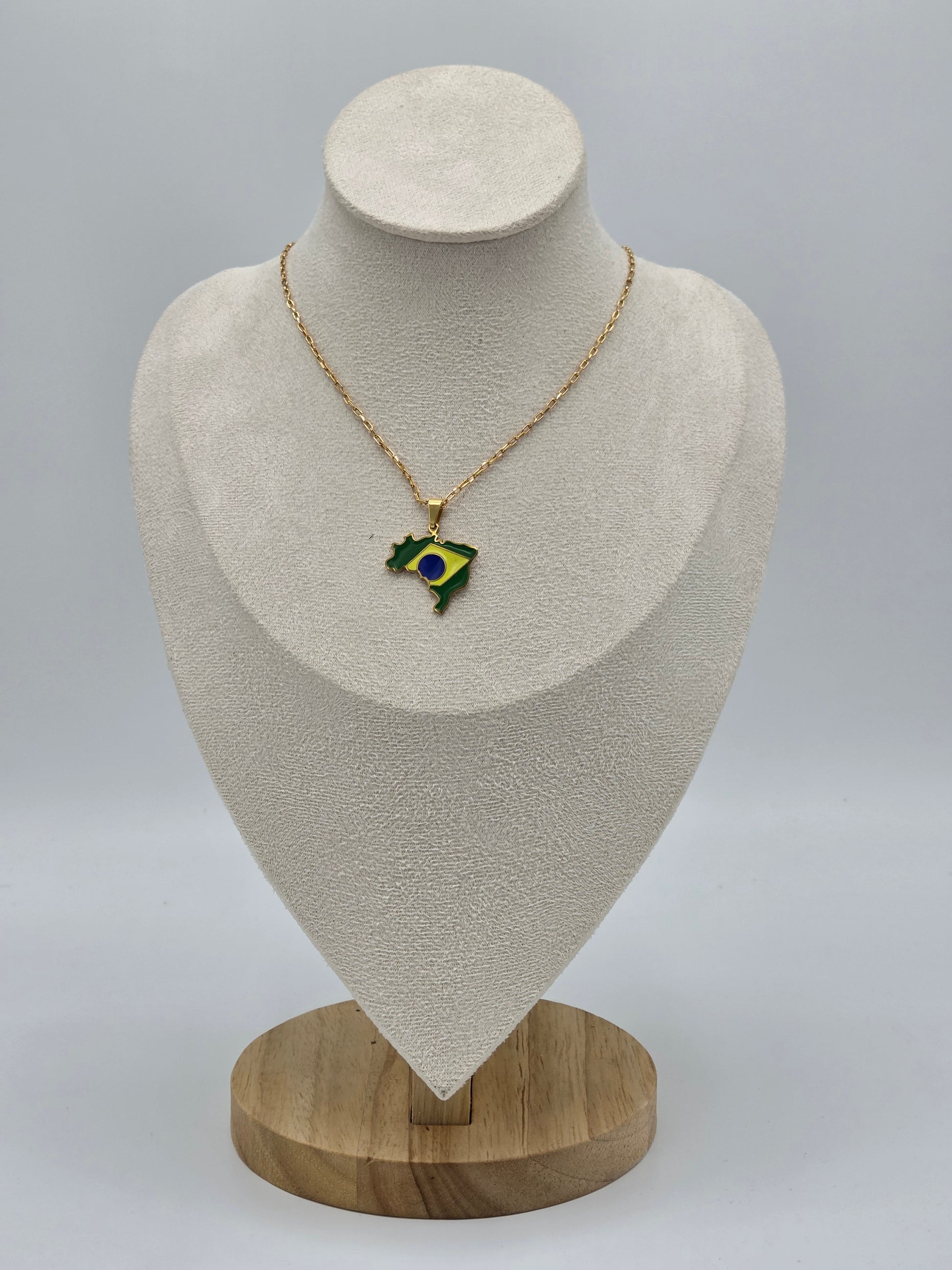 Gold-tone Brazil flag necklace-a delicate bijou that celebrates your roots with a bright, elegant touch